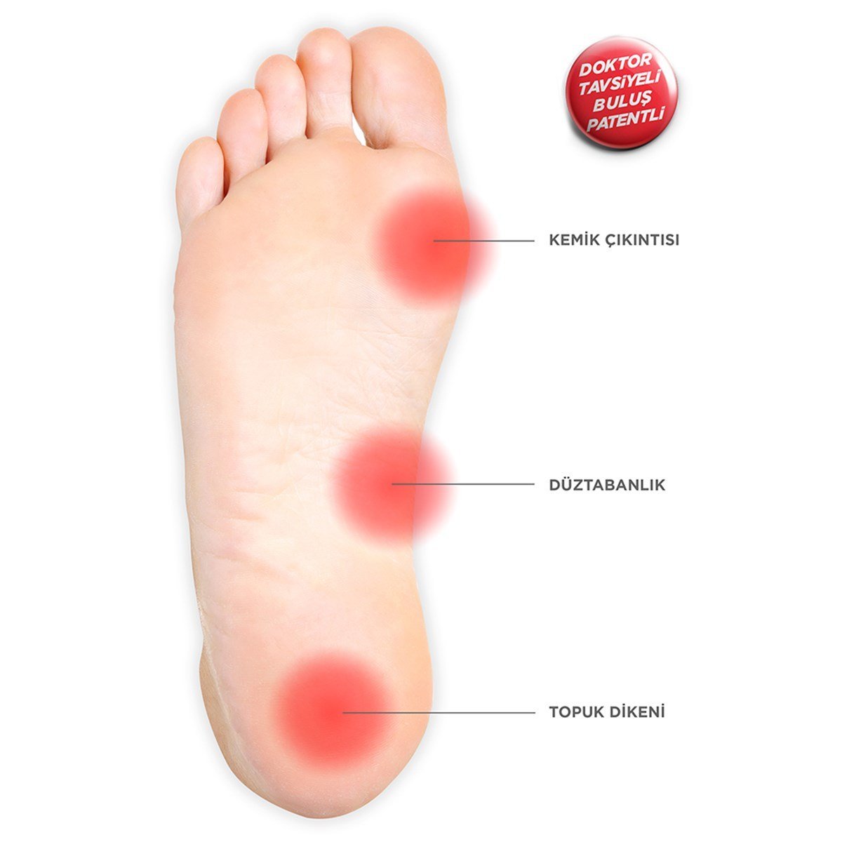 Kullanıcıların %91’i ayakkabıyı düzenli kullanmaya başladıktan sonra topuk dikeni, plantar fasya gerilimi ve içe basma kaynaklı ağrılarda belirgin azalma bildirdi.